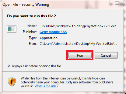 Hộp thoại hiện lên xác nhận mở file cài đặt, bạn chọn “Run”.