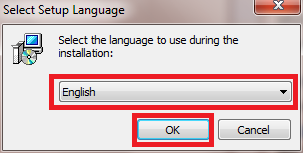 Kế tiếp, để bắt đầu chạy file hãy chọn ngôn ngữ. Ngôn ngữ “English”, nhấn chọn “OK”.