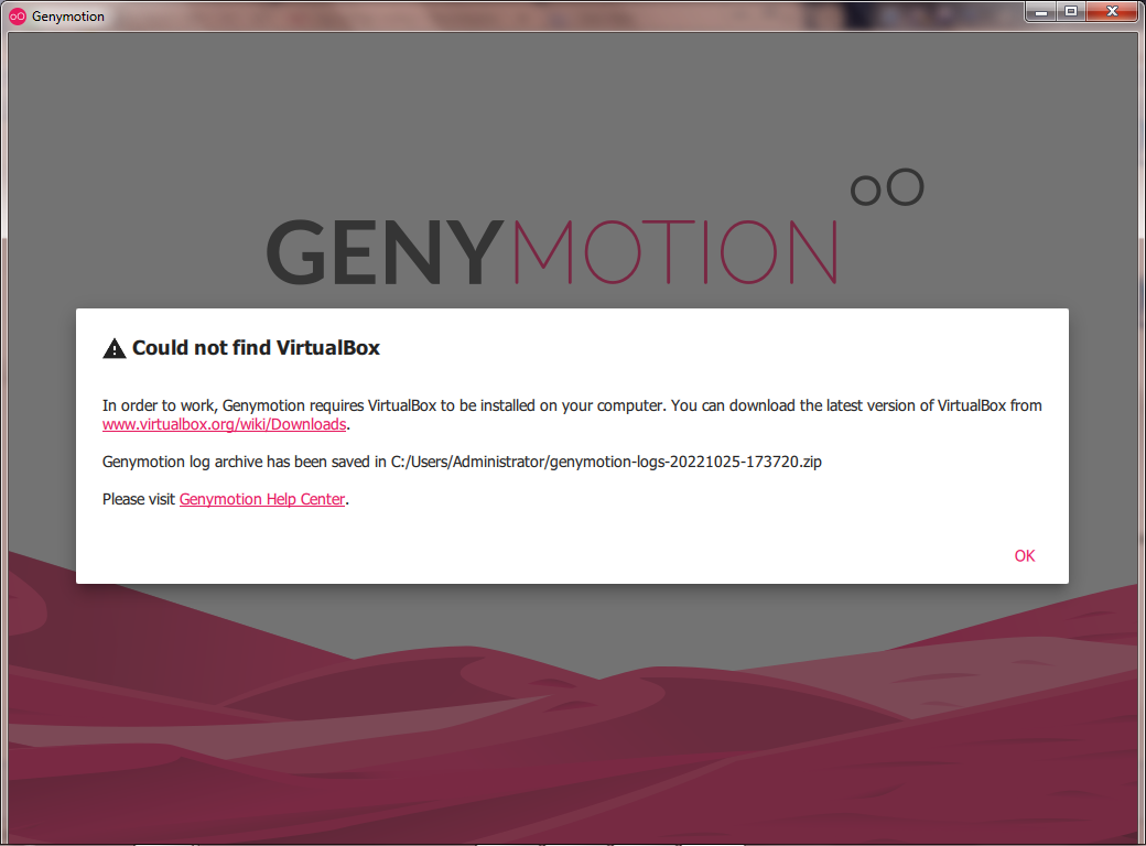 File cài đặt thành công, bạn tiến hành mở phần mềm Genymotion. Hiện tại, phần mềm đang báo lỗi và không thể hoạt động bình thường. Chính vì vậy giả lập bằng Genymotion để cài đặt App iWin Club là không nên. Bạn nên cân nhắc sử dụng một phần mềm giả lập khác để cài đặt App hoặc sử dụng Smartphone để có trải nghiệm chơi iWin Club tốt hơn. Chúc bạn may mắn nhận được nhiều phần thưởng hấp dẫn từ Sòng bạc thượng lưu  iWin Club.