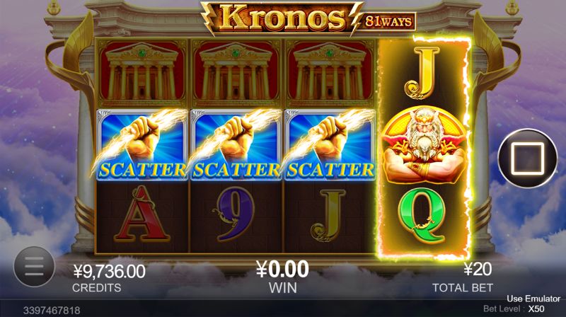 Kronos dẫn dắt người chơi bước vào thời kỳ hoàng kim của thần thoại Hy Lạp cổ đại. Trò chơi slot game này có bảng kết quả được thiết kế đặc biệt theo dạng 4×3 (4 cột 3 dòng) và 3 biểu tượng WILD chỉ được xuất hiện trong vòng quay miễn phí (không có ở vòng quay thường). Giá trị tiền thưởng có thể lên đến 1.000 lần so với mức cược nếu như bạn đủ may mắn.
