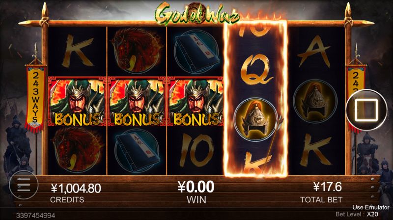 God of War tái hiện lại câu chuyện lịch sử kinh điển của Trung Quốc. Người chơi trở thành nhân vật chính, trải nghiệm cảm giác hồi hộp khi cầm kiếm ra trận trên chiến trường. Trong vòng quay miễn phí, người chơi có thể chọn một trong năm biểu tượng và nó sẽ chỉ xuất hiện biểu tượng đã chọn bảng kết quả, tạo ra phần thưởng cực đã nếu vào cầu may mắn.