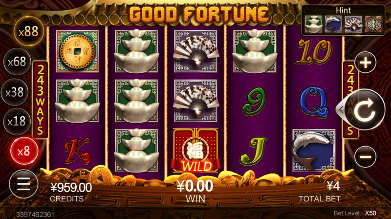 Good Fortune được thiết kế dựa trên sự giàu có thịnh vượng trong truyền thống Trung Quốc. Người chơi có thể chọn số tiền đặt cược để nâng cấp các biểu tượng, nâng cao phần thưởng chiến thắng. Đến với vòng quay miễn phí, bạn sẽ được nhận những lời chúc phúc từ Thần Tài. Bên cạnh đó các biểu tượng có mức trả thưởng cao nhất cũng sẽ xuất hiện để xem liệu bạn có giành được giải thưởng lớn đang chờ đón không.