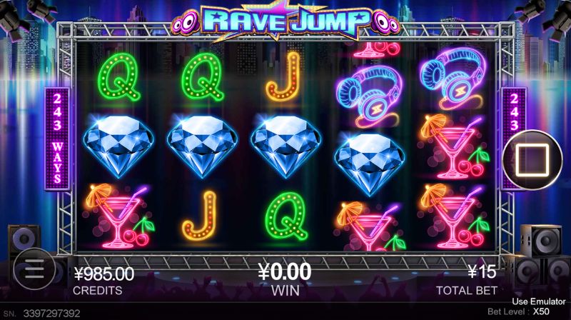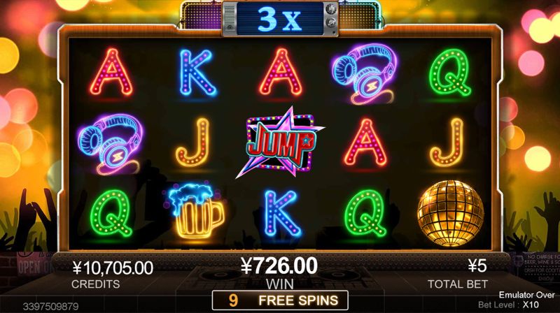 Rave Jump là một trong những slot game nổi tiếng CQ9. Phong cách câu lạc bộ đêm lộng lẫy đầy màu sắc chắc chắn sẽ thu hút người chơi ngay từ cái nhìn đầu tiên. Nếu bảng kết quả trả về có biểu tượng Quả bóng Vàng là bạn sẽ được thưởng lượt quay miễn phí. Số lượng biểu tượng Quả bóng Vàng sẽ quyết định hệ số phần thưởng trong vòng quay miễn phí, càng nhiều thì ăn càng to.