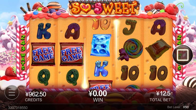 So Sweet với những hình ảnh que kẹo bắt mắt sẽ khiến cho người chơi cảm thấy dễ chịu và thích thú. Các que kẹo trong game còn có tác dụng mang tiền thưởng về cho người chơi nữa cơ. Trong vòng quay miễn phí, điểm số trong vòng này sẽ được nhân 3 lần để tăng số tiền thưởng người chơi được nhận. Tựa game nổ hũ này nhắc nhở người chơi về những kỳ vọng và khao khát của họ đối với từng viên kẹo khi còn nhỏ, giống như tham vọng hiện tại của họ về những giải thưởng lớn lên đến cả trăm triệu đồng vậy.