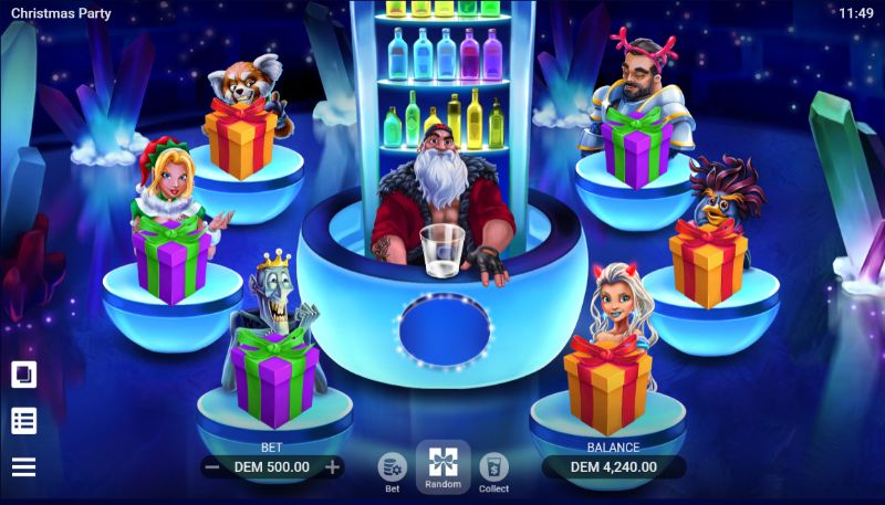 Game Christmas Party sẽ bao gồm các nhân vật hoạt hình được yêu thích hiện nay bao gồm ông già Noel, Wild Chic, Hilda, Deathless King, Anaru, Red Panda và Knight. Quẩn bar của trò chơi được phục vụ bởi chính ông già Noel. Người chơi càng khám phá ra nhiều nguyên liệu, thì càng có nhiều món cocktail ngon mắt và đắt tiền. Bạn cần tìm ít nhất một trong sáu hộp quà ở mỗi giai đoạn của trò chơi để bước vào lượt chơi tiếp theo và giành chiến thắng với phần thưởng lên đến 10 lần mức cược. Lưu ý cần tránh xa những viên đá ra nhé, chúng sẽ làm hỏng ly cocktail của bạn đấy.