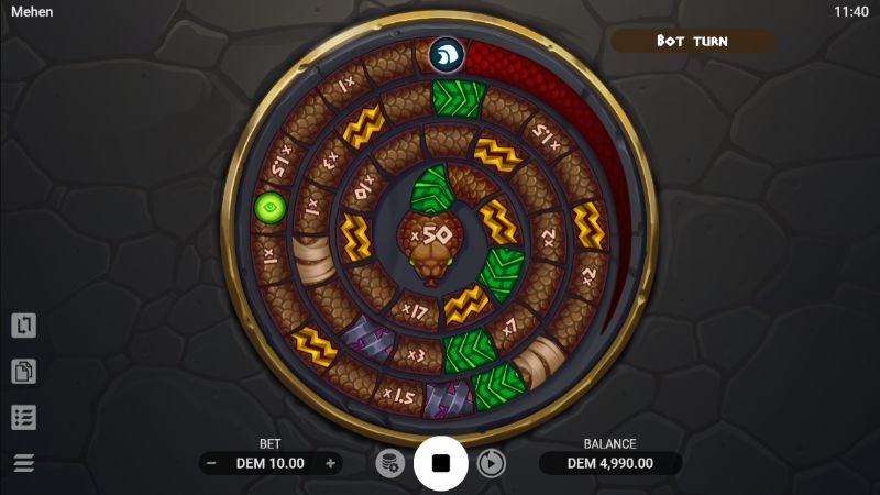 Mehen là game lấy chủ đề dựa trên những truyền thuyết về vùng đất Ai Cập. Trong quá trình chơi, người chơi tung xúc xắc để di chuyển khắp bản đồ và đánh thức con rắn Mehen, được bảo vệ bởi ác thần Apep. Số chấm trên xúc xắc càng nhiều thì người chơi càng tiến gần đến Mehen. Tuy nhiên, người chơi nên cố gắng tránh Apep. Hắn ta cải trang thành xác ướp và cố gắng cản trở những nhà thám hiểm bằng những cái bẫy và hướng đi sai lệch để ngăn bạn đạt được mục tiêu. Có 46 bước đi mà bạn phải vượt qua để có thể lấy được phần thưởng x50 giá trị mức cược cực hấp dẫn.