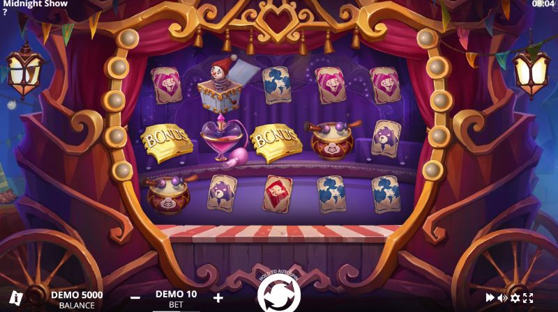 Bảng kết quả trong game slot Midnight Show có hình dạng 3×5 (3 dòng 5 cột) với tổng cộng 20 dòng trả thưởng tất cả. Biểu tượng Scatter sẽ chỉ xuất hiện ở cột 1, 3 và 5. 3 biểu tượng Scatter xuất hiện kích hoạt Vòng quay may mắn và người chơi sẽ được quay miễn phí. Nếu bảng kết quả cũng có 3 biểu tượng Bonus xuất hiện thì người chơi được tham gia Bonus Game với phần quà hấp dẫn.