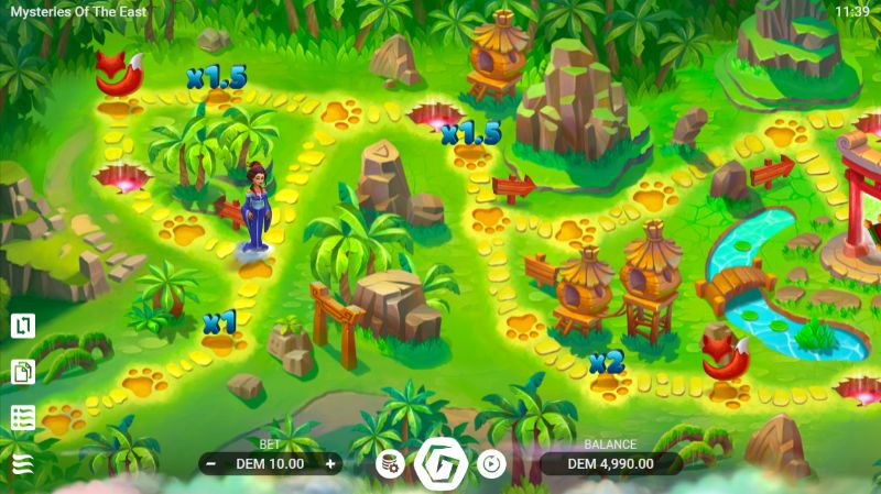 Mysteries Of The East là một cuộc phiêu lưu trên bàn cờ cực kỳ thú vị bằng quân xúc xắc. Đai loại xúc xắc gieo số bao nhiêu thì được di chuyển từng đó bước trên bản đồ để đến Ngôi đền Orchid chứa đầy kho báu. Người chơi cần giúp Keiko đến đích và và thu nhặt tiền trên đường đi mà không rơi vào bẫy của kẻ địch. Đảm bảo với may mắn của bạn, Keiko sẽ di chuyển tới đích một cách thuận lợi.