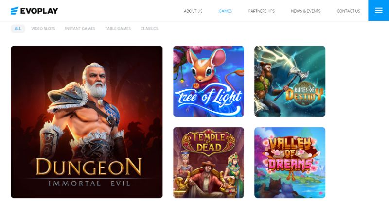Với sản phẩm đặc thù là các game slot và game nổ hũ, Evoplay đã xây dựng được một danh mục với hơn 100 games khác nhau chỉ trong 4 năm. Nhà phát hành vẫn đang tiếp tục xây dựng danh mục game đáng kinh ngạc của mình dựa theo xu hướng thị trường, bắt trend các sự kiện thú vị để đưa vào trò chơi một cách tự nhiên nhất. Nhà phát hành Evoplay cung cấp các game Casino online bao gồm slot game, table game, game Casino truyền thống (Baccarat, Roulette,…) và các game đỏ đen tự do khác.