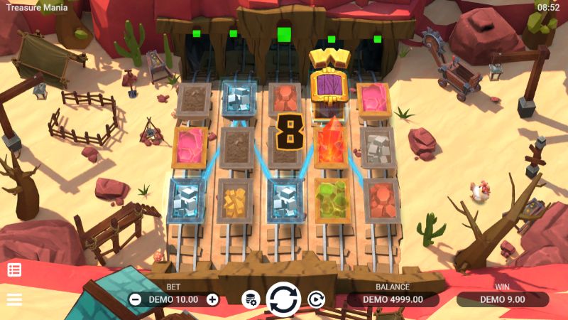 Bạn nghĩ sao về một game slot với mức trả thưởng cao nhất lên đến 700 lần mức cược? Bảng kết quả trong game có hình dạng 3×5 (3 dòng 5 cột) với 20 dòng trả thưởng, cơ hội ăn thưởng là không hề nhỏ chút nào. Treasure Mania là một sản phẩm thú vị của Evoplay đảm bảo sẽ khiến người chơi thích thú bởi đồ họa đẹp mắt của trò chơi.