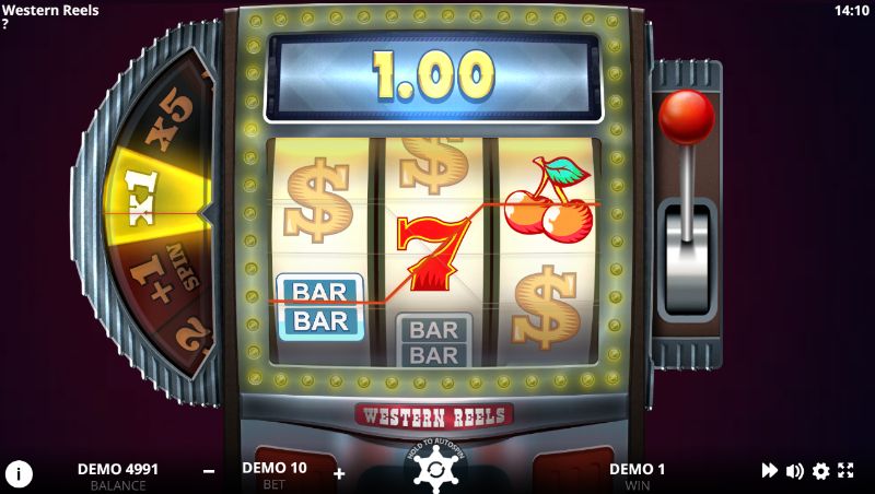 Western Reels sẽ mang người chơi quay về với những máy slot game cổ xưa, phải gạt cần thì mới khởi động được máy. Bảng kết quả trong game có 5 dòng trả thưởng. 3 biểu tượng Scatter xuất hiện sẽ giúp bạn có thêm 10 lượt quay miễn phí tha hồ kiếm tiền. Nếu may mắn ăn được 3 biểu tượng Kim Cương sẽ giành được phần thưởng x200 lần tiền cược.