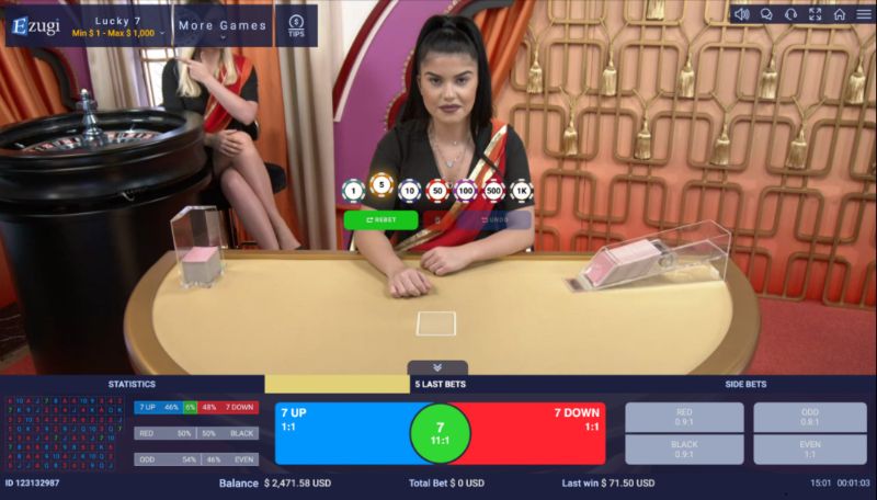 Lucky 7 là một game sòng bài đơn giản và thú vị. Trong Lucky 7, mục tiêu của trò chơi là dự đoán xem lá bài tiếp theo được chia sẽ có giá trị trên 7 (Tài) hay dưới 7 (Xỉu) hoặc bằng 7. Trò chơi này cũng cung cấp các mức cược phụ sau: