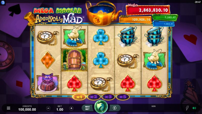 Trong game slot Absolootly Mad có tới 243 dòng trả thưởng với bảng kết quả 3 dòng 5 cột. Biểu tượng WILD sẽ chỉ xuất hiện ở cột 2, 3 và 4. 3 biểu tượng Free Spins xuất hiện sẽ cho người chơi 8 lượt quay miễn phí. Mỗi lần quay thưởng sẽ tích lũy một chút tiền vào hũ chung của trò chơi, nếu ai may mắn ăn được thì số tiền trong hũ sẽ reset về 0.