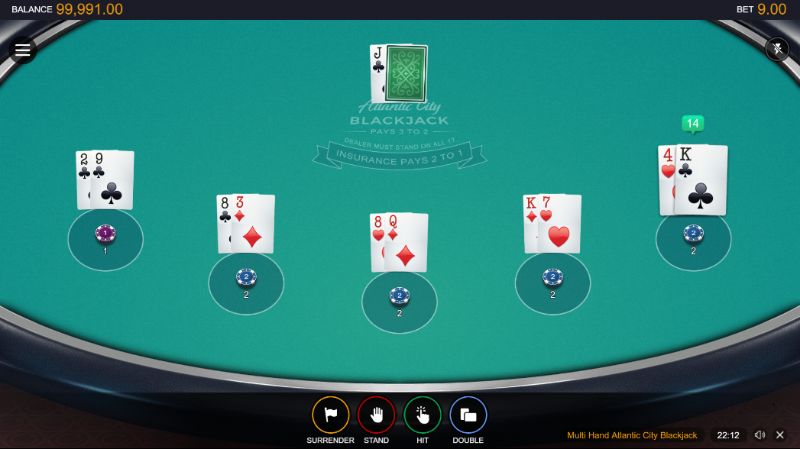 Trong game Atlantic City Blackjack, sẽ có tới 5 vị trí chơi để bạn đặt cược, mỗi vị trí tương ứng với 2 lá bài khác nhau. Người chơi có thể chọn một trong 4 lệnh như Surrender (bỏ bài), Stand (giữ bài), Hit và Double. Nếu cuối cùng bài của bạn to hơn nhà cái thì sẽ được ăn thưởng. Nếu ngay trong 2 lá bài đầu có một con Ace và một trong các con 10, J, Q, K chất bất kỳ thì người chơi được Blackjack và thắng.