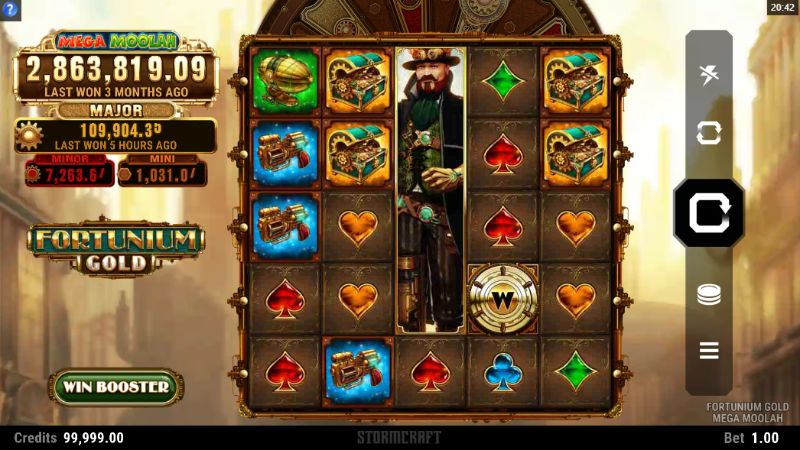 Fortunium Gold là một game slot thú vị được phát hành bởi Microgaming. Bảng kết quả trong game có hình dạng 5×5 với tổng cộng 40 dòng trả thưởng. Nếu có trên 3 biểu tượng Scatter xuất hiện, người chơi sẽ được nhận 10 lượt quay miễn phí. Lưu ý rằng biểu tượng Scatter sẽ chỉ xuất hiện ở cột 2, 3 và 4. Hãy cố gắng để ăn những phần thưởng nổ hũ cực kỳ có giá trị trong game, hứa hẹn sẽ đem đến số tiền nằm mơ cũng không thấy.