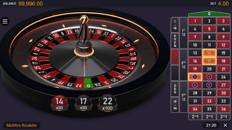 Người chơi sẽ được chọn tối đa 5 số may mắn, nếu như quả bóng lăn vào số nào thì sẽ ăn thưởng tương ứng. Phần thưởng khi trúng Roulette dao dộng trong khoảng từ 50 lần cho đến 500 lần mức cược.