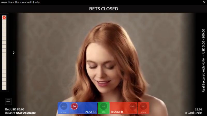 Trong game Baccarat này, người chơi và nhà cái sẽ được chia mỗi người 3 lá bài trong đó có 2 lá bài chính và 1 lá bài phụ. Luật chơi cũng giống như game Baccarat thông thường thôi, bài của ai cao hơn thì sẽ thắng. Nếu như bạn đặt cửa nhà cái thì khi thắng sẽ phải trả cho họ 5% phí hoa hồng. Người dẫn chương trình Holly sẽ điều khiển trò chơi này.