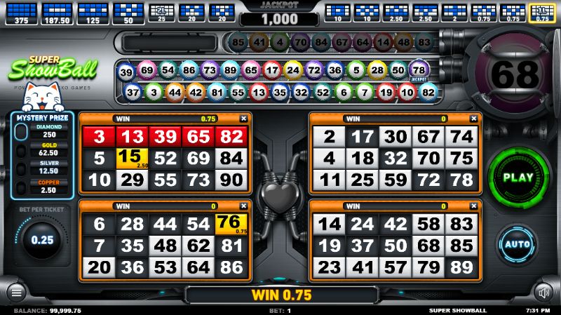 Sẽ có 4 bảng số hiện lên với tổng cộng mỗi bảng 15 số. Sau khi người chơi nhấn vào nút ‘Play’, một dãy 30 quả bóng sẽ xuất hiện. Nếu như các quả bóng này tạo nên các dòng thắng trong bảng số cho sẵn, người chơi sẽ nhận được phần thưởng tương ứng. Bạn cũng có thể điều chỉnh tốc độ của game nhanh hay chậm tùy thuộc sở thích.