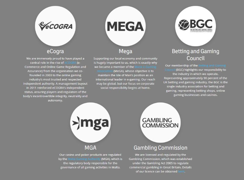 Là một nhà tiên phong trong lĩnh vực game Casino online do đó số lượng giấy phép và chứng chỉ công nhận của nhà phát hành Microgaming là không thể nào liệt kê hết được. Để có thể trụ được trong ngành Casino cần phải có sự tin tưởng và tôn trọng của người chơi. Thương hiệu Microgaming sẽ không có được như ngày hôm nay nếu như không kết hợp các nguyên tắc chơi công bằng có trách nhiệm vào trò chơi ngay từ đầu.